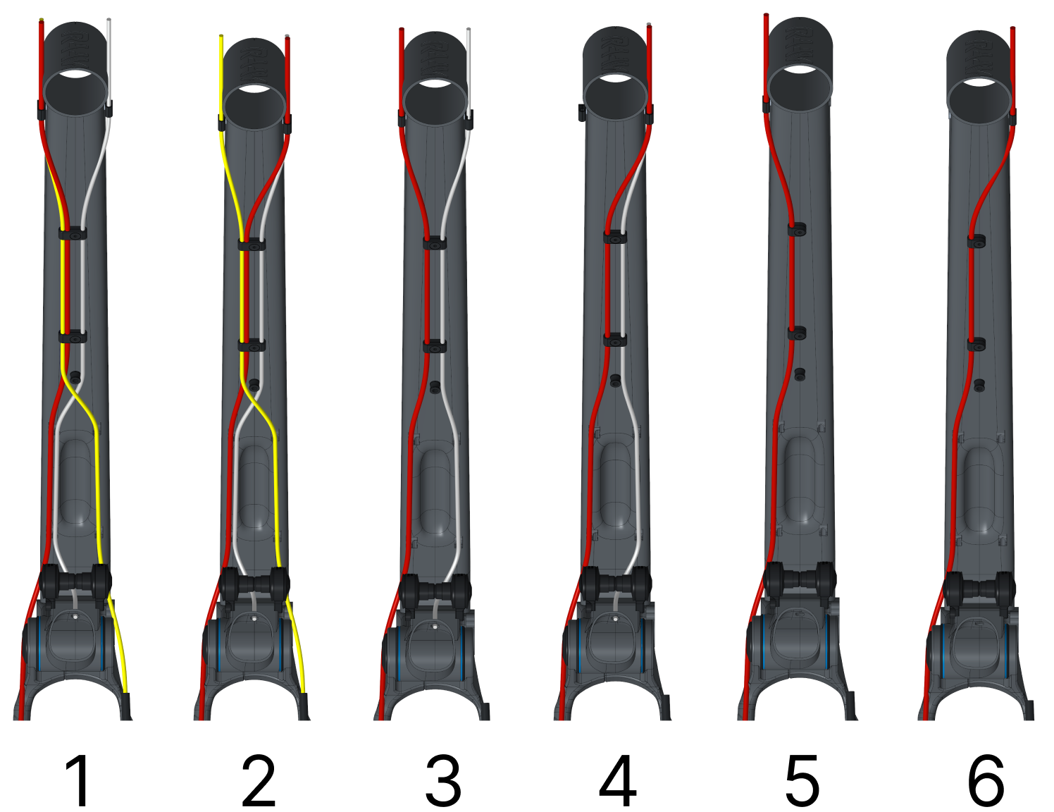 Red: Brake Hose | Yellow: Gear Cable | White: Dropper Cable